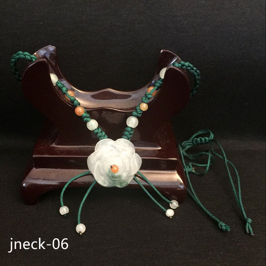 Elegant Handmade Ladies Oriental Chinese Jade Flower Adjustable Necklace jneck5