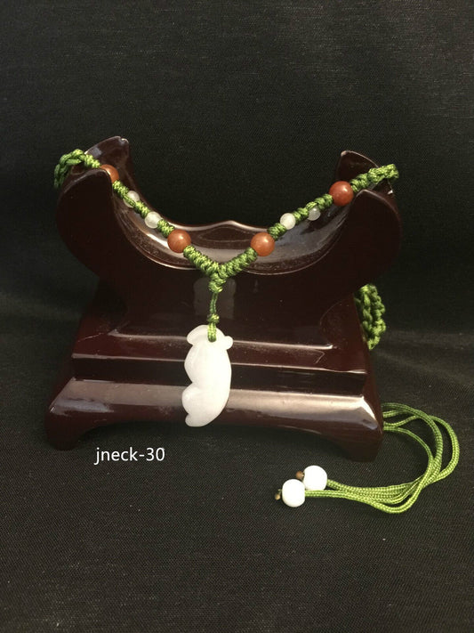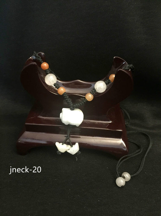 Handmade Ladies Oriental Chinese Cute Zodiac Piglet Jade Adjustable Necklace