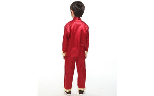Traditional Chinese Children Boys Red Kung Fu Inspired Top & Trousers Pyjamas