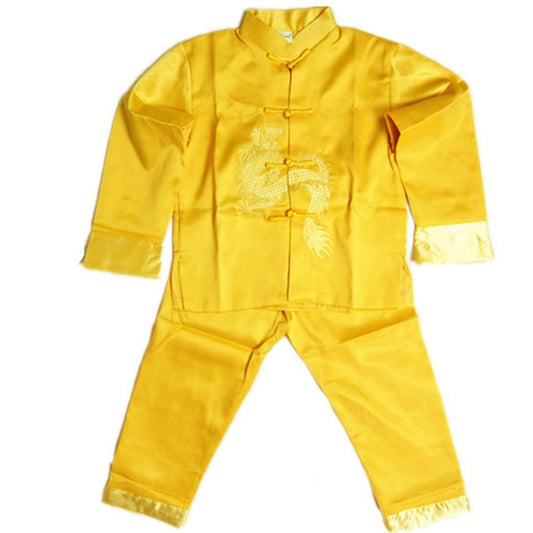 New Chinese Oriental Childrens Boys Gold Dragon Top Trousers Set Pyjamas chboy3