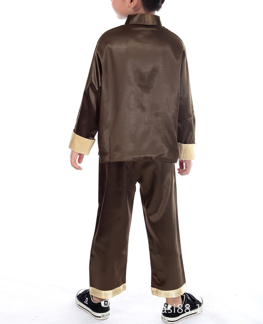 New Chinese Oriental Childrens Boys Brown Dragon Top Trousers Pyjamas chboy4