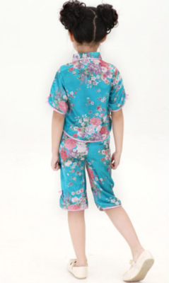 Chinese Japanese Blue Childrens Girls Floral Top & Trousers Set Pyjamas cgps5