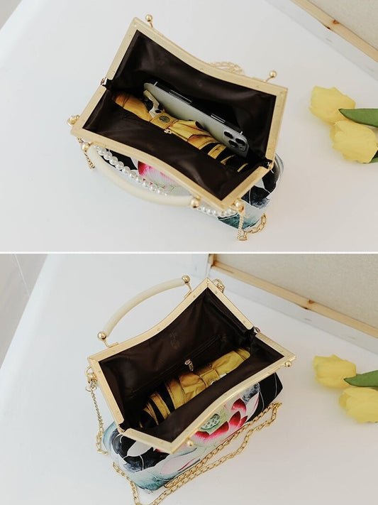 Ladies Chinese Heaven Cranes Royal Charms Evening Golden Clasp Shoulder Handbag
