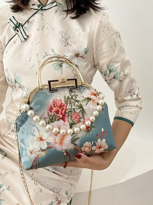 Floral Elegance: Chinese-Style Ladies' Handbag with Pearl Embellishments