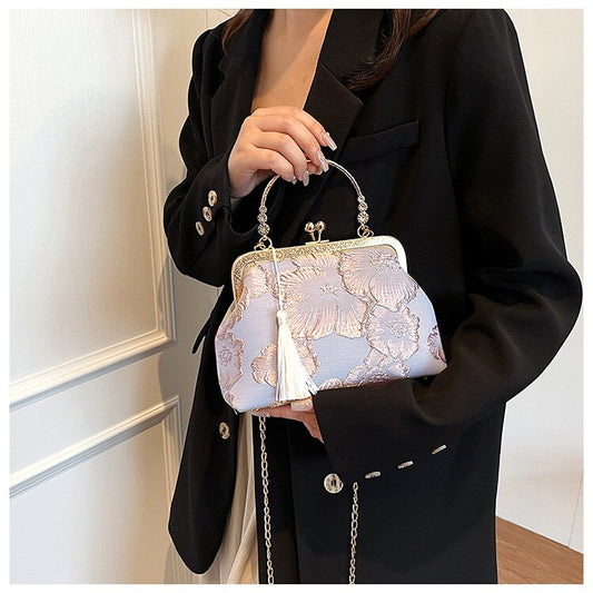 Elegant Chinese Style Handbag – Embroidered Silk Purse with Vintage Clasp