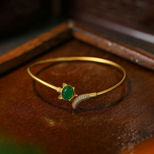 Chinese Jade Fox Bangle Elegant GoldPlated Bracelet with Jade and Diamond