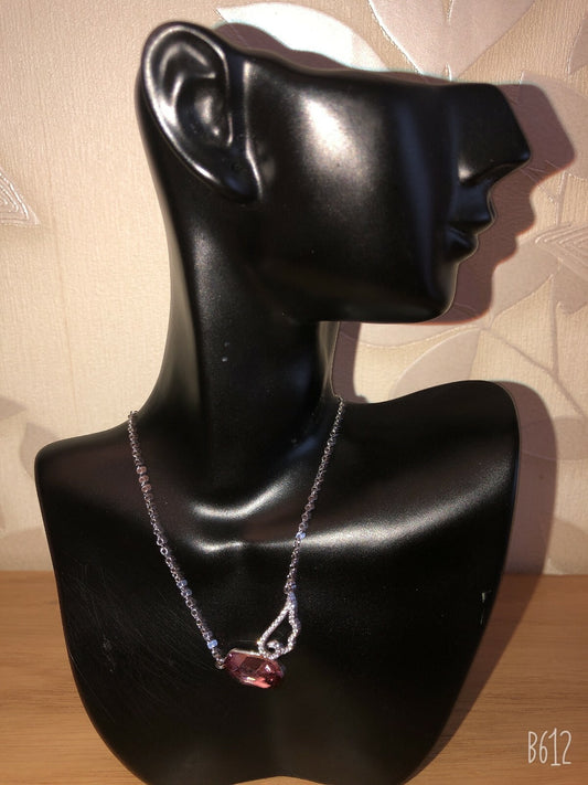 Silver Ladies Beautiful Purple Cherry Green Gemstone Pendant Elegant Necklace