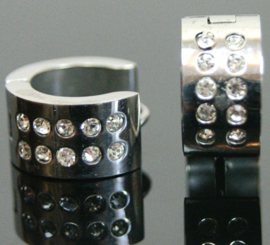 Mens Ladies Surgical Steel Diamond Huggie Hoop Earrings