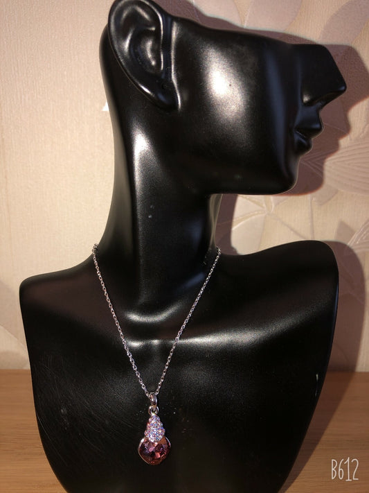 New Silver Ladies Beautiful Champaign Pink Gemstone Pendant Elegant Necklace