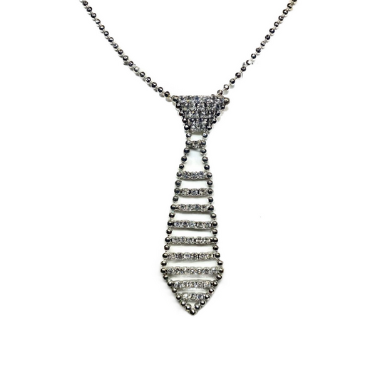 New Ladies Womens Beautiful Gorgeous Diamante Tie Shape Pendant Necklace Gift