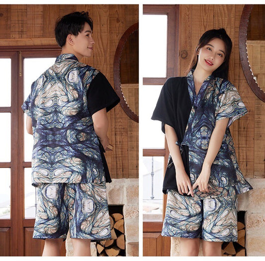 Chinese Japanese Mens Black Abstracts Shorts Kimono Pyjamas Pajamas menpjs59