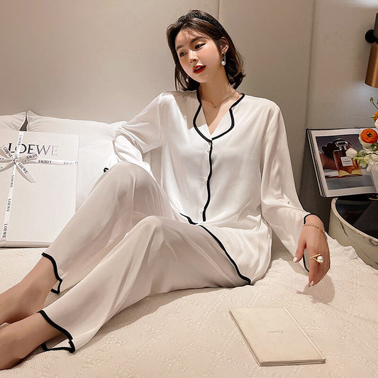 New Luxurious Ladies Satin Pearl White With Black Trim Pyjamas Set ladpj376