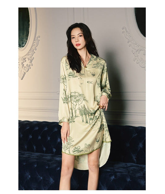 New Elegant Satin Dressing Gown – Luxurious and Stylish Willow Green Loungewear