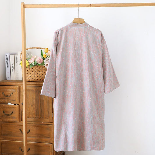 Women's Pastel Pink & Aqua Striped Jacquard Kimono Robe with Soft Textured Weave