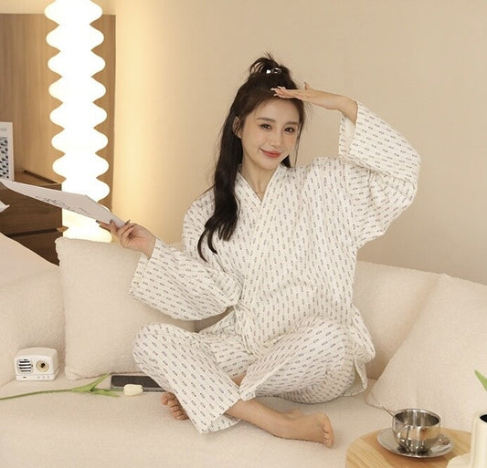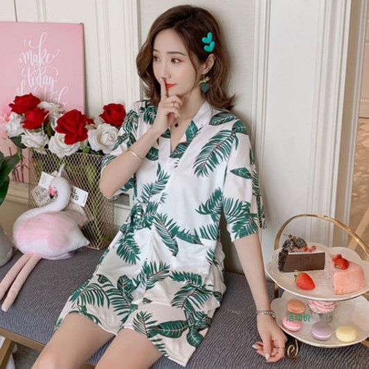 New Chinese Japanese Leaves Cotton White Short Ladies Kimono Pyjamas ladpj364