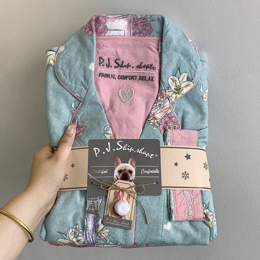 Gift For Her Luxurious Ladies' Brushed Cotton Pyjamas with Elegant Floral Motifs