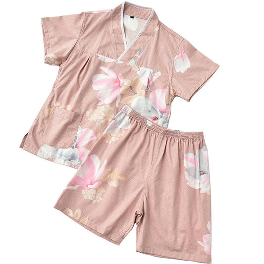 New Chinese Japanese Ladies Pink Lotus Top and Shorts Kimono Pyjamas ladpj322