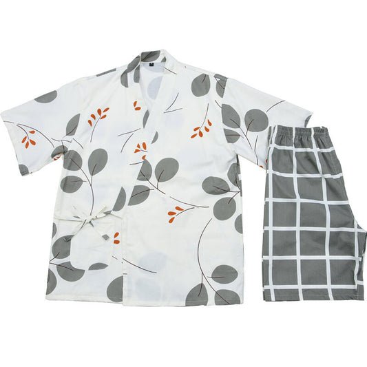 New Chinese Japanese Ladies Grey Leaves Top and Shorts Kimono Pyjamas ladpj321