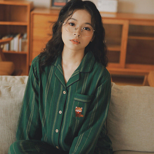 Luxurious Comfy Wear Ladies Green Cotton Pyjama Set with Red Panda Embroidery