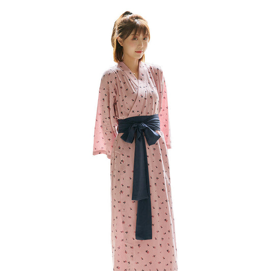 New Chinese Japanese Ladies Pink With Floral Prints Kimono Robe Gown ladpj351
