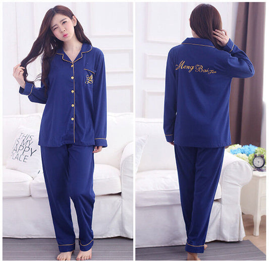 New Ladies Royal Blue Cotton Button Top and Trousers Pyjamas Pajamas Set ladpj96