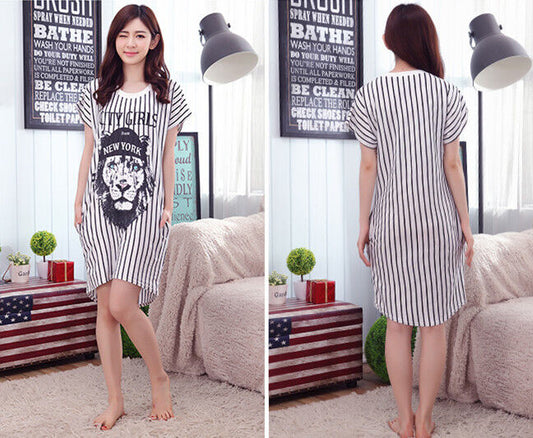 Ladies New York City Girl Lion of the CITY Stripes Nightdress Nightie ladpj84