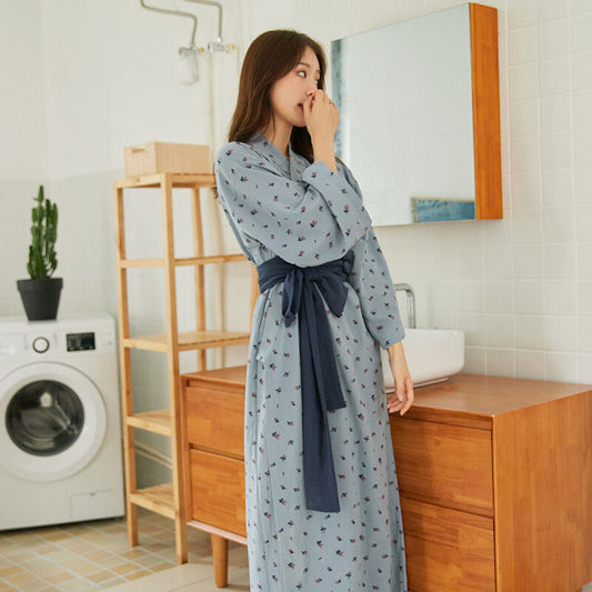 Women's Lavender Cotton Kimono-Style Dressing Gown with Floral Oriental Motifs