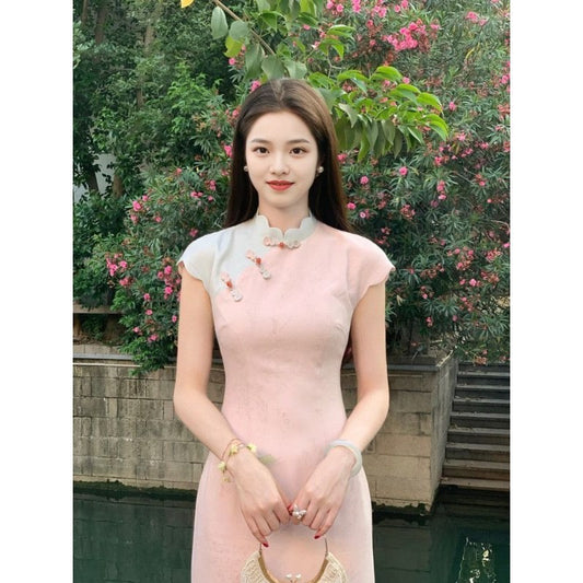New Elegant Ladies Chinese Pink DualTone Embroidered Qipao Cheongsam Dress
