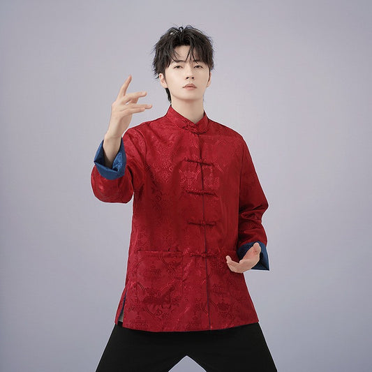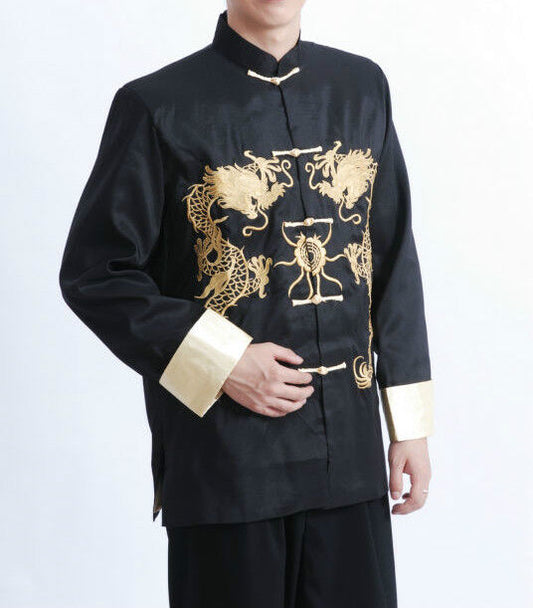 Traditional Men's Chinese shirts featuring with dragon and other symbolic patterns.