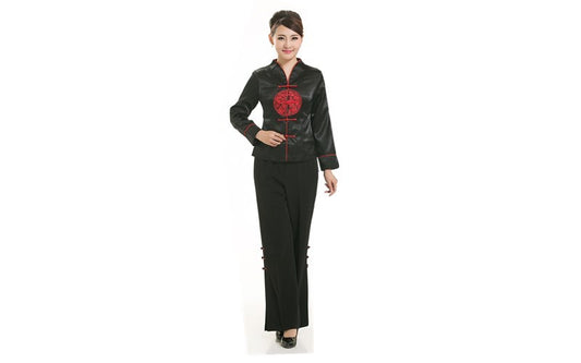 Traditional Chinese Oriental Black Satin Red Lucky Pattern Top Cheongsam lctop2