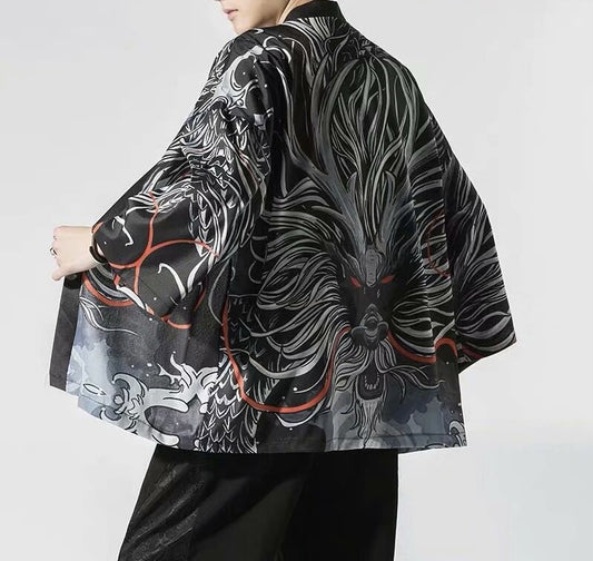 New Womens Ladies Chinese Japanese Oriental Black Kimono Black Dragon Top ltop28