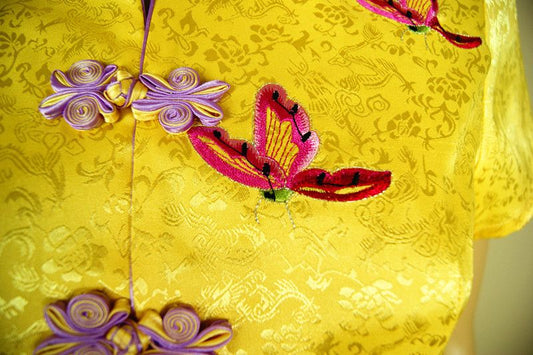 New Royal Yellow Traditional Chinese Oriental Satin Peony Flower Top Cheongsam