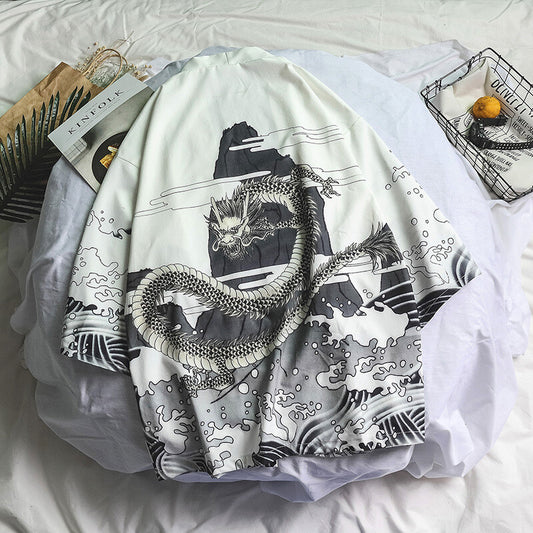 New Womens Ladies Chinese Japanese Oriental Kimono Style White Dragon Top ltop1