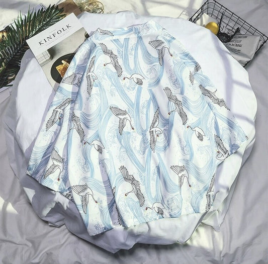 New Womens Ladies Chinese Japanese Oriental Kimono Style White Cranes Top ltop22