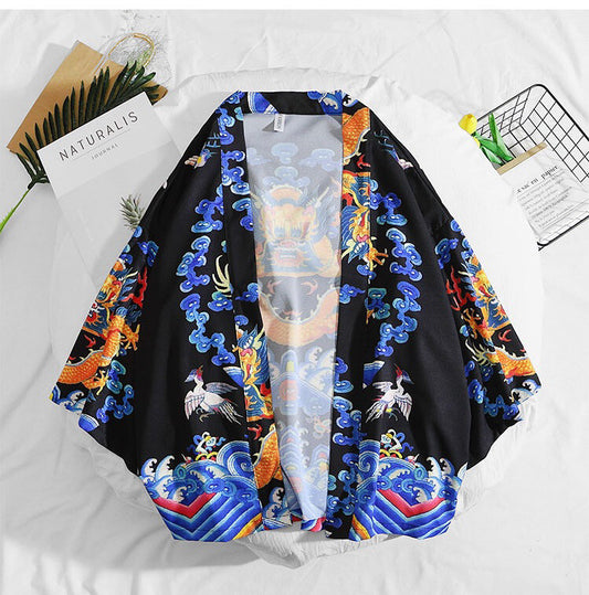 Womens Ladies Chinese Japanese Oriental Kimono Royal Dragon Black Top ltop19