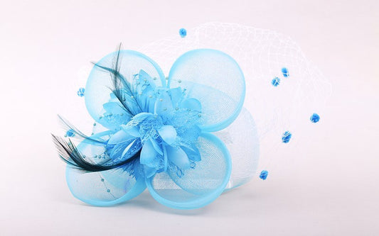 New Blue Flowers Netting Feather Ladies Wedding Ascot Fascinator Hair Clip hfac7
