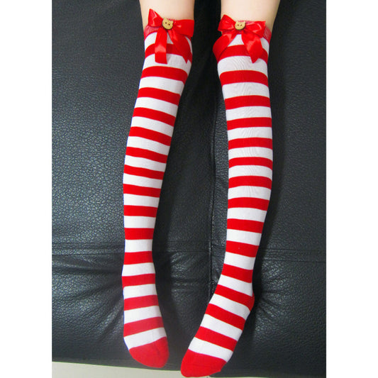 Christmas Red Stripes Snow Balls On Bow Ladies Womens Tights Size 812