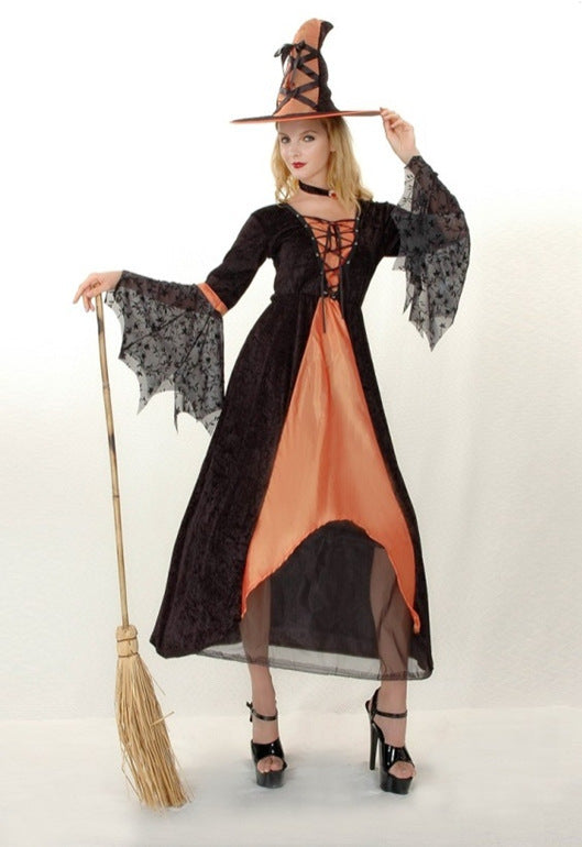 Womens Wicked Witch Pumpkin Orange Halloween Costume Fancy Party Dress ladcos25