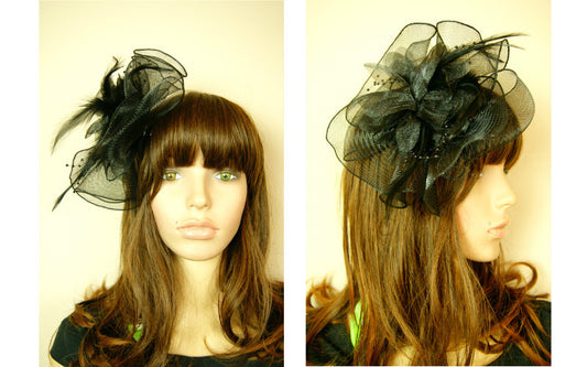 Black Flowers Ladies Womens Wedding Races Ascot Fascinator Hat Hair Clipper Veil