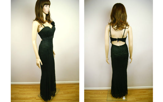 Gorgeous Ladies Womens Black Diamond Studs Metallic Floral Long Evening Dress