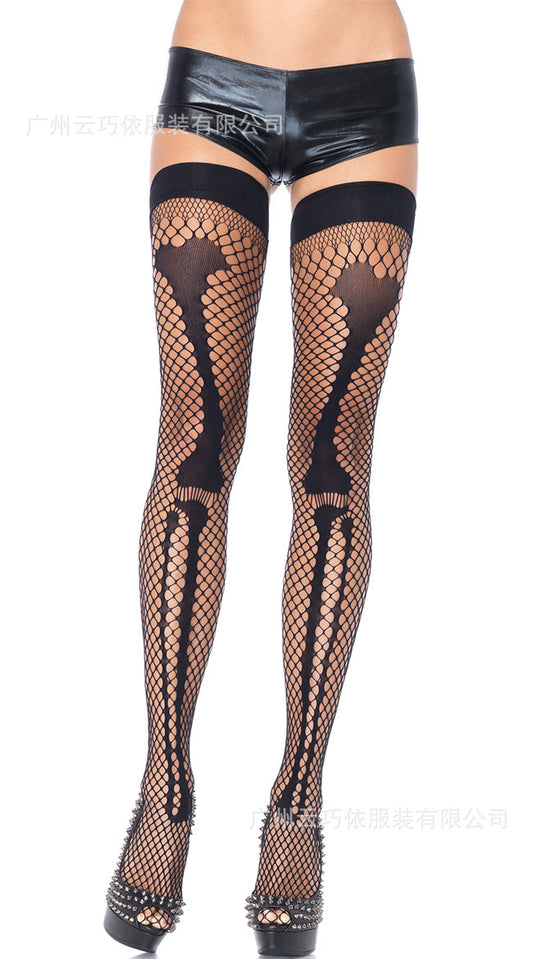 New Ladies Womens Black Gothic White Skeleton Halloween Tights Size 812 holsto2