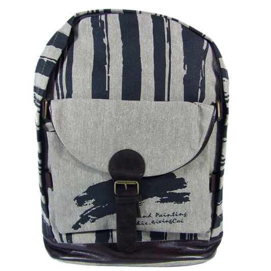 New Ladies Girls Grey with Black Straps Canvas Backpack Bag with Leather Trim