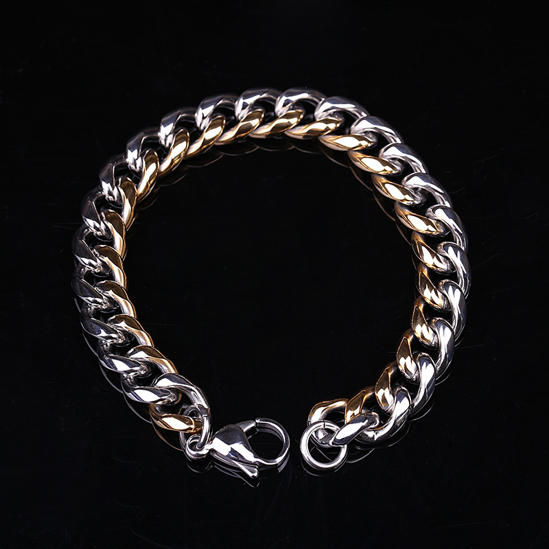 21cm High Quality Mens Heavy Stainless Steel Silver & Gold Curb Chain Bracelet