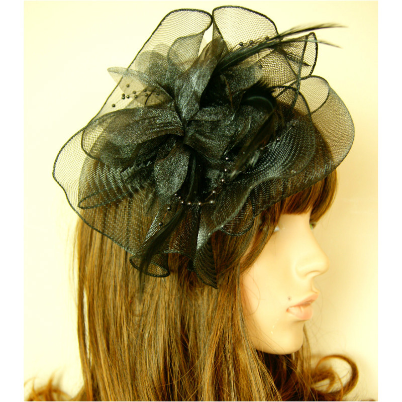 Black Flowers Ladies Womens Wedding Races Ascot Fascinator Hat Hair Clipper Veil