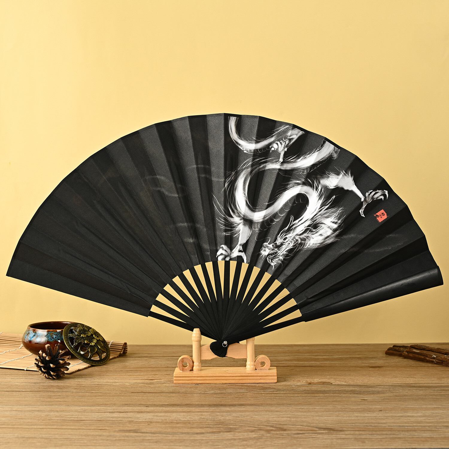 Chinese Double Sided Embroidered Yellow Mountain Scenery Round Wooden Hand Fan