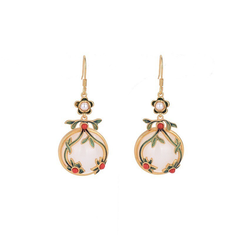 Introducing these stunning Chinese Enamel Gold-Plated Palace-Shaped Dangle Earrings, adorned with Natural Green Round Jade stones! These earrings are a perfect fusion of traditional Chinese elegance and modern design. Crafted with attention to detail, these earrings are made of high-quality enamel and are gold-plated for added durability and longevity. The intricate palace-shaped design is reminiscent of ancient Chinese architecture, making them a perfect complement to any traditional Chinese outfit. The natural green round jade stones used in these earrings add a touch of nature's beauty to the overall design. Jade is revered in Chinese culture for its beauty, durability, and spiritual significance. These earrings are lightweight and comfortable to wear, making them perfect for daily wear or special occasions. Their versatile design means they can be dressed up or down, making them a valuable addition to your jewelry collection. With their unique and elegant design, these Chinese Enamel Gold-Plated Palace-Shaped Dangle Earrings are a must-have for anyone who loves traditional Chinese culture and fashion. They also make an excellent gift for your loved ones on any special occasion. Order yours today and add a touch of Chinese elegance to your wardrobe!