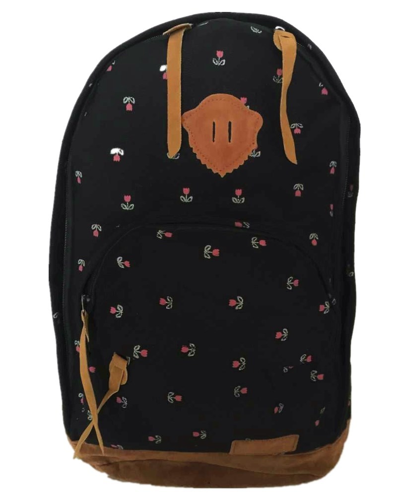 Cute Ladies Womens Girls Bear and Roses Dark Blue Canvas Backpack Rucksack Bag