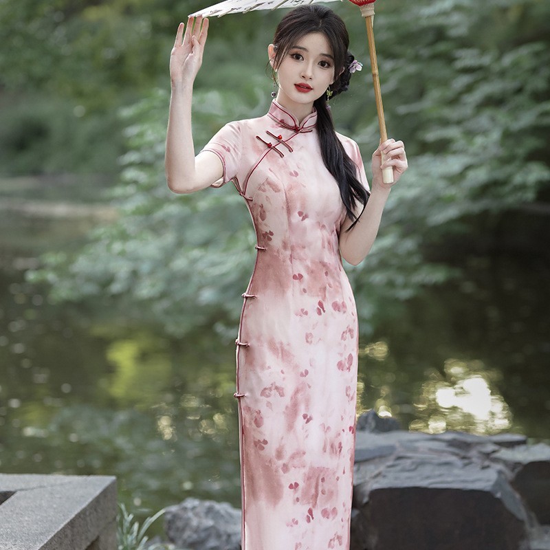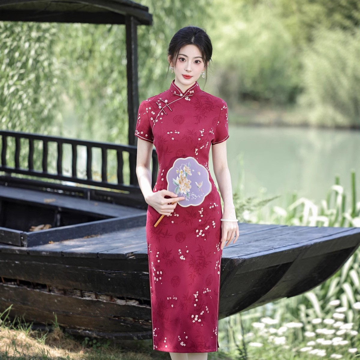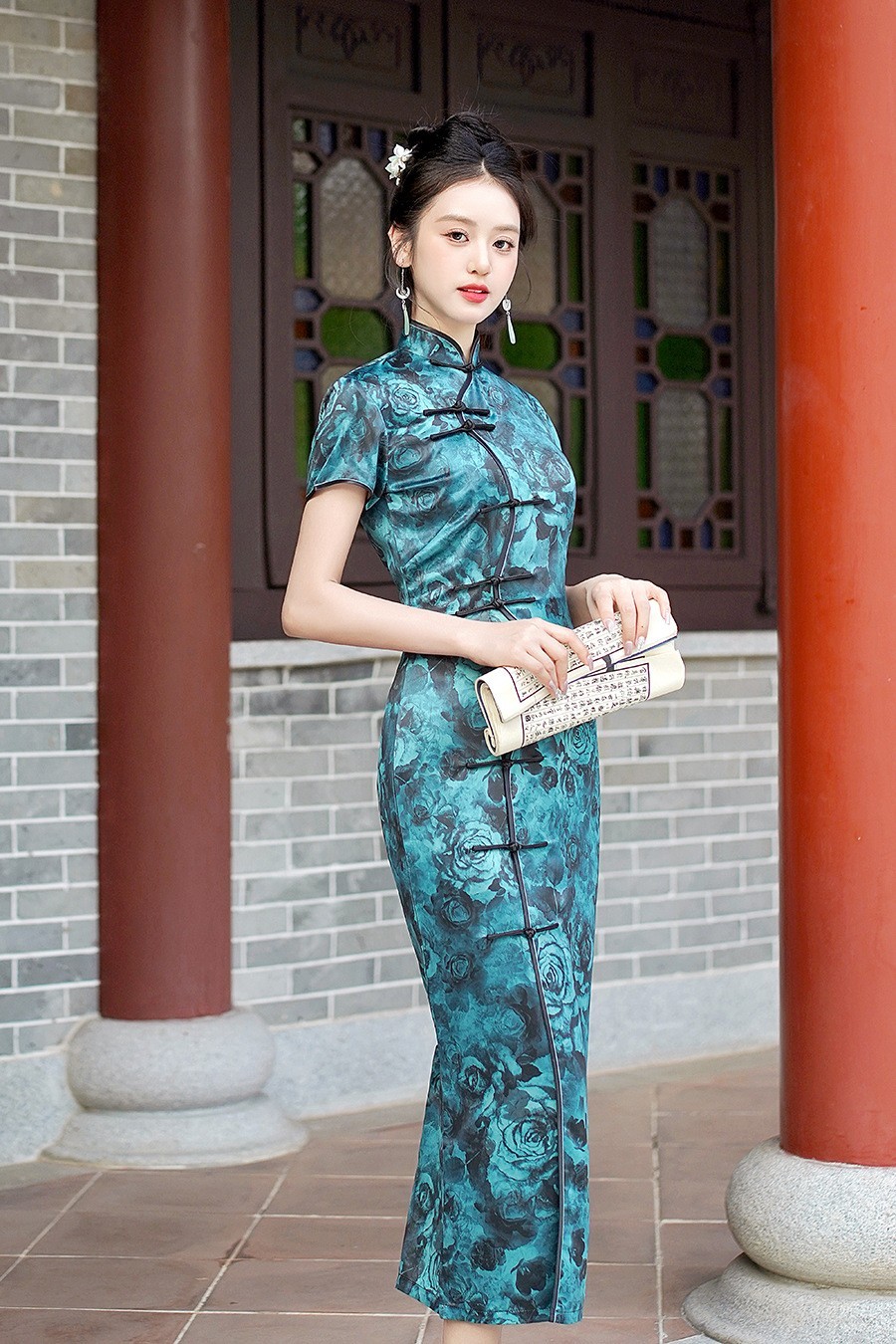 Fit: Slim-fit, ankle-length qipao with invisible back zip fastening
