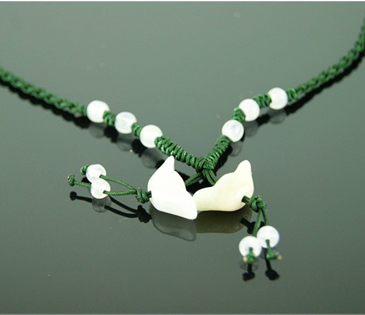 New Handmade Ladies Oriental Chinese White Jade Happiness Adjustable Necklace