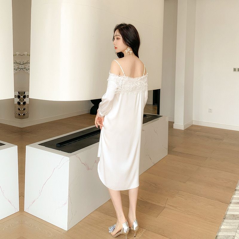 Elegant White Victorian Style Long Sleeve Cotton Ladies Lace Nightdress